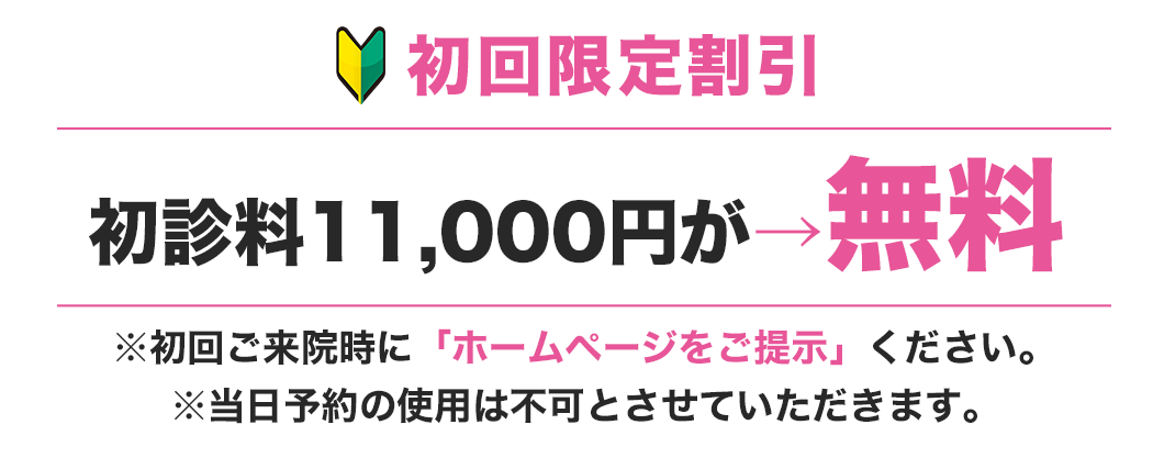 | 初診料・再診料 | 初診料:11,000円 再診料:1,100円~11,000円 ※初診(初めて受診する方)、再診(最終来院日より1ヶ月以上経過している方。) |