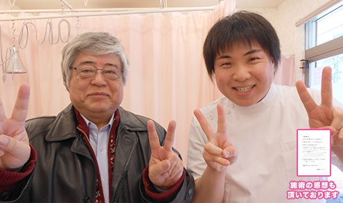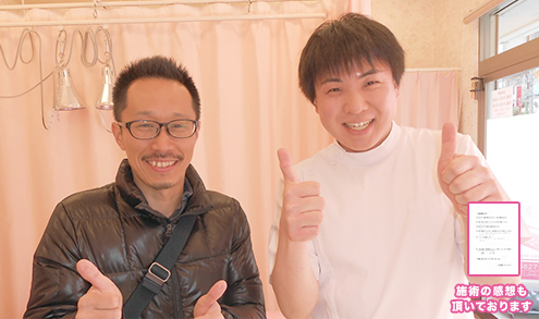 また、小笠原先生の凄いところは常に新たな治療法についての研究を継続している姿勢です。多忙な中での日々のこうした努力ごと確かな治療効果の持続といった結果につながっているのだと思います。さらに特筆すべきは小笠原先生の人柄です。これは技術以前に治療家にとって最も重要な要素です。